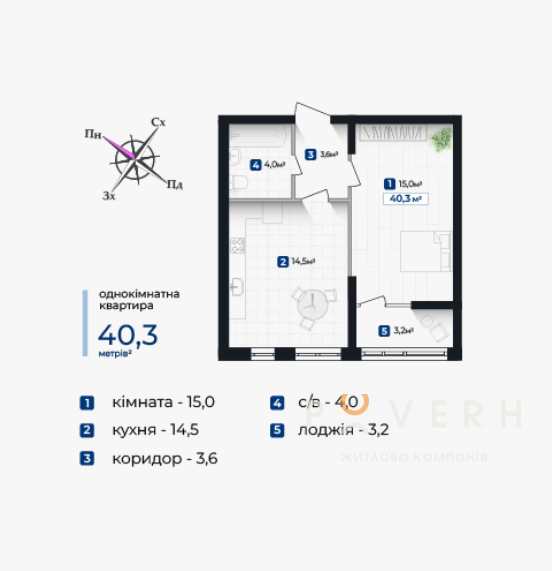 Площа: 40.30 м2