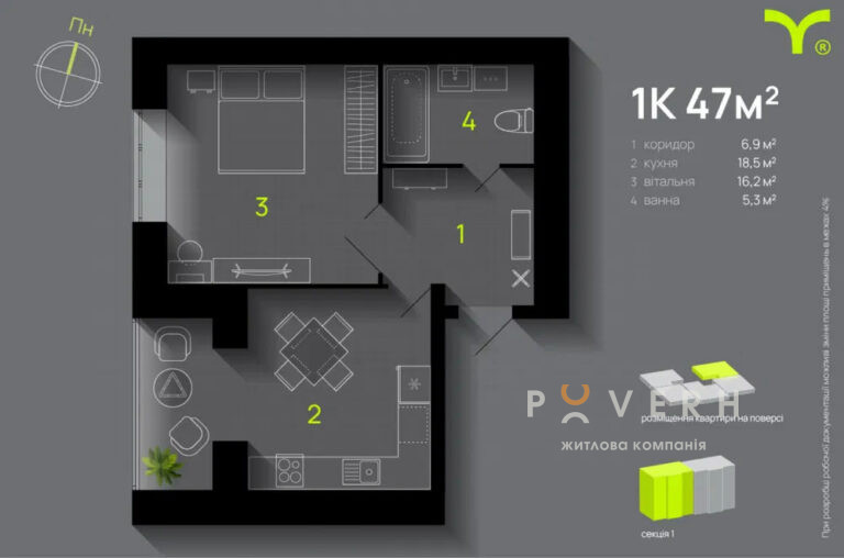 Площа: 47 м2