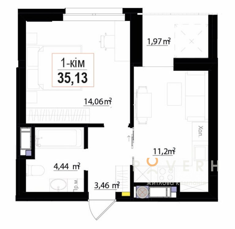 Площа: 35.13 м2