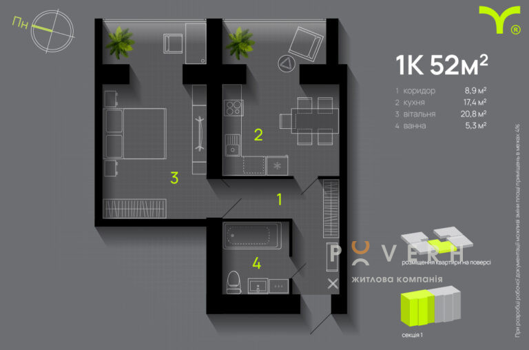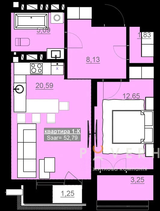 Площа: 51.5 м2