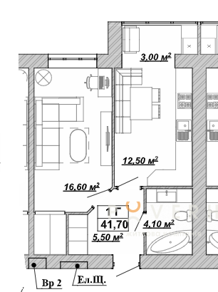Площа: 41.7 м2