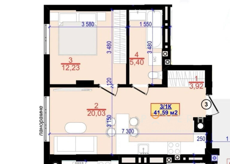 Площа: 41.59 м2