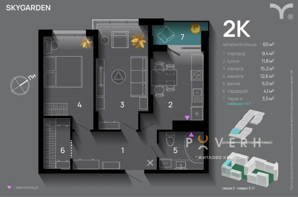 Загальна площа: 60 м²