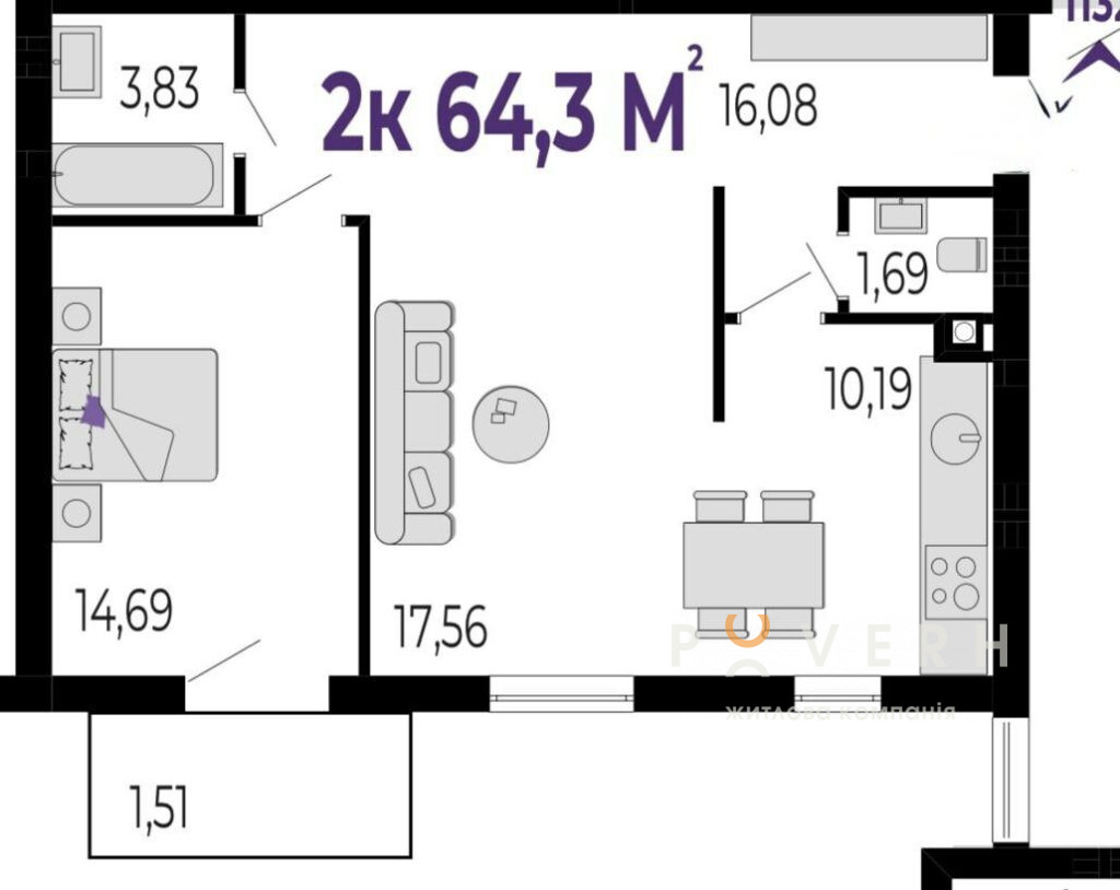 - 64.3 м2