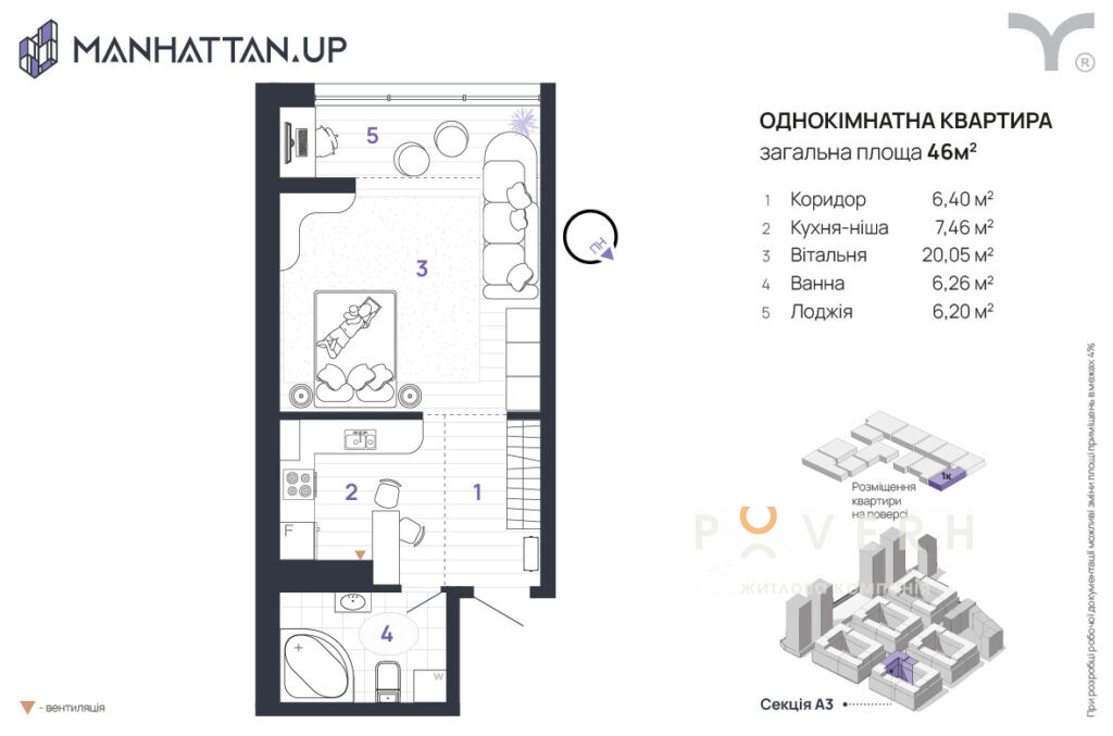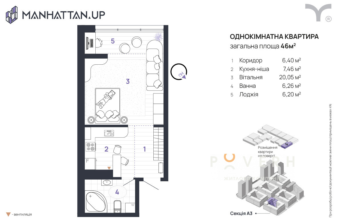 Розташована на комфортному 7 поверсі сучасного житлового комплексу «Манхеттен АП».