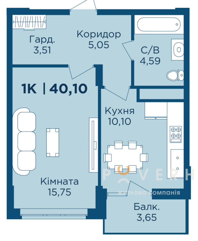 🔹 Площа — 40,1 м²