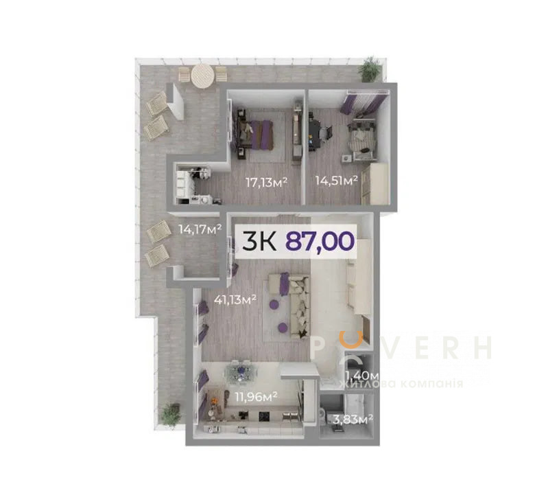 - 3 кімнати