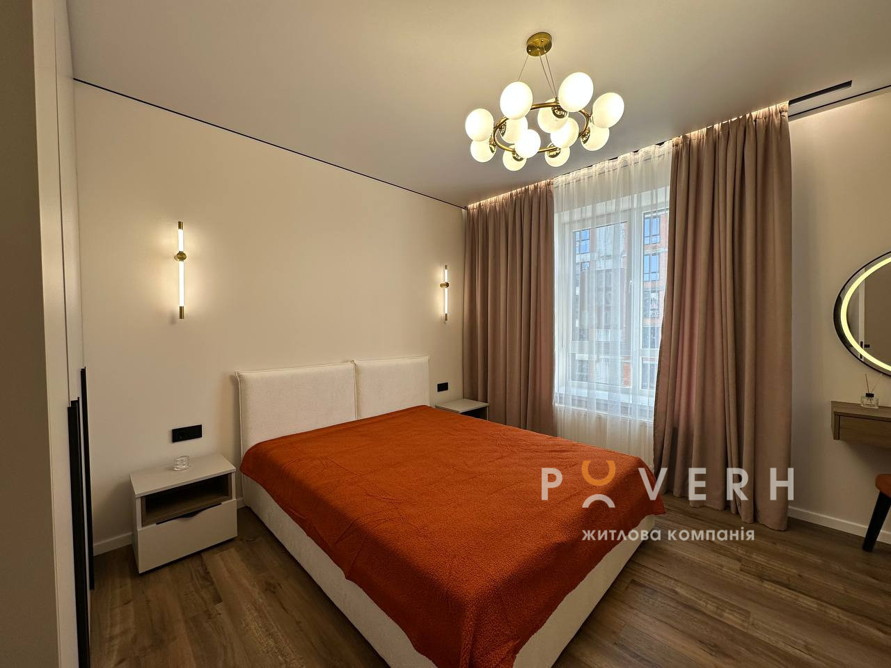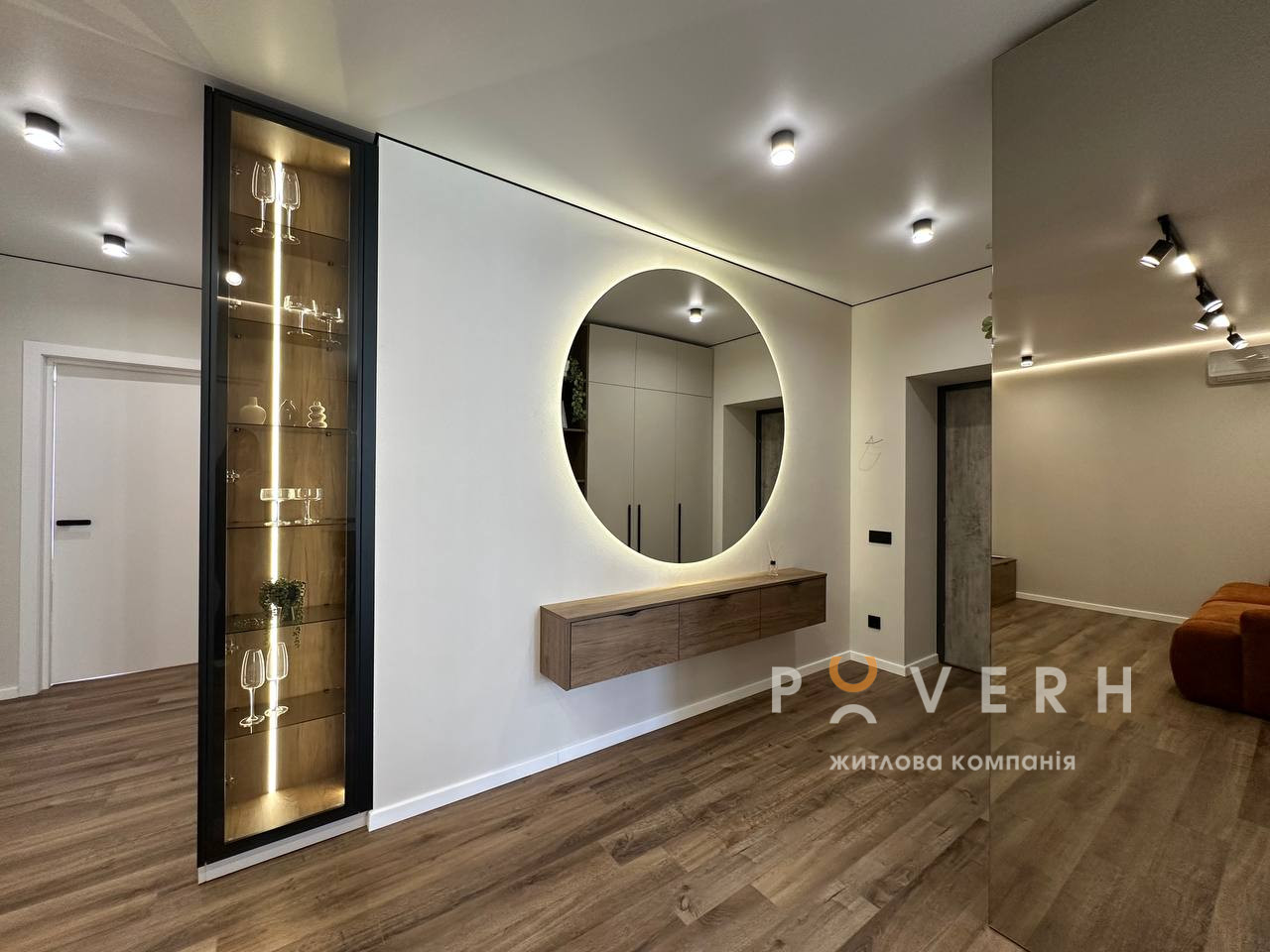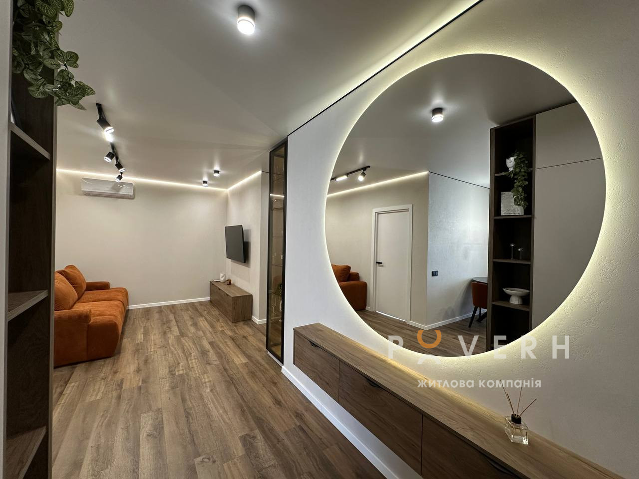 У квартирі використано теракотовий акцентний колір, який додає інтер’єру тепла, свіжості та сучасного характеру.